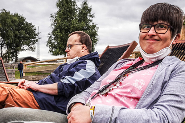 "Vroni und Markus beim relaxen“ "Steffi hat Spaß die Schafe zu streicheln“